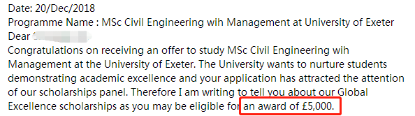 最后还有一个小彩蛋,金吉列还为R同学争取到5000英镑奖学金,希望金吉列Yana老师和学生们也一同变得越来越优秀。还在犹豫的小伙伴们快戳小窗口找Yana老师为您规划好留学之路。