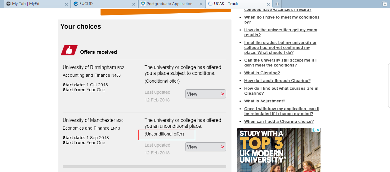 录取学校:伦敦大学国王学院、曼彻斯特大学、杜伦大学、伯明翰大学