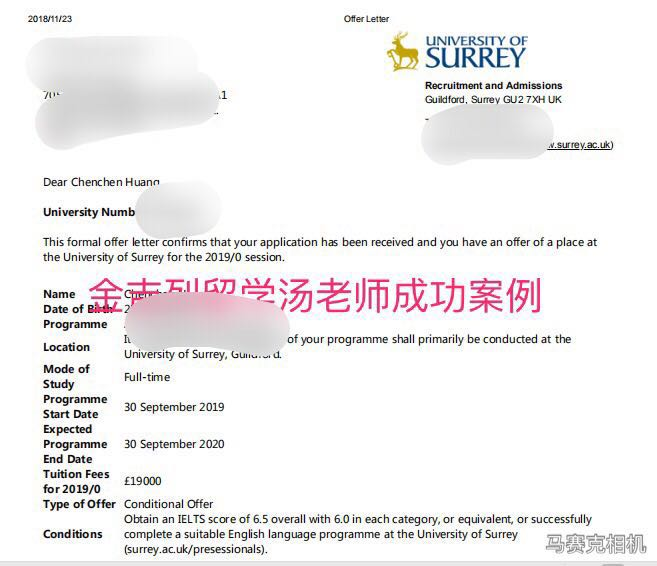 学生目前决定去魅力无穷的萨里大学深造,萨里大学录取截图如下