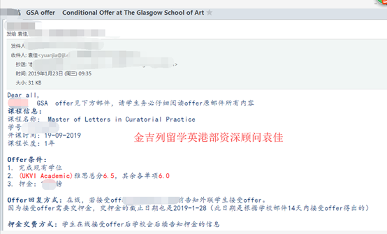 录取学校: 格拉斯哥美术学院