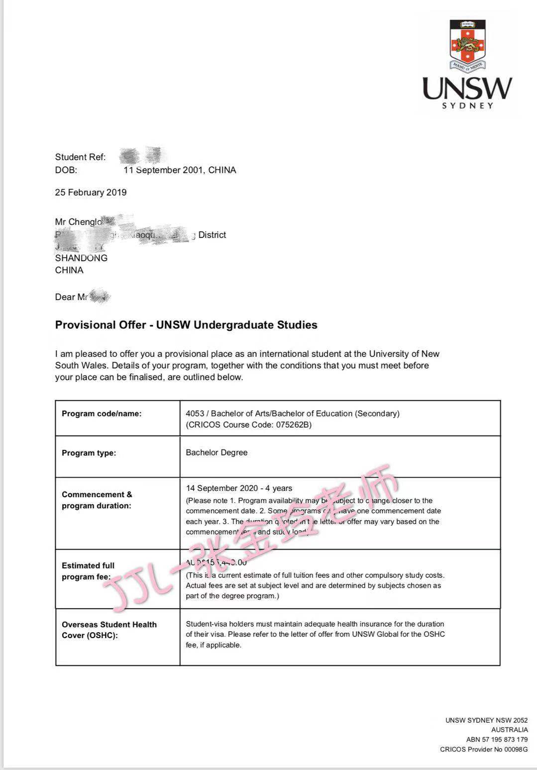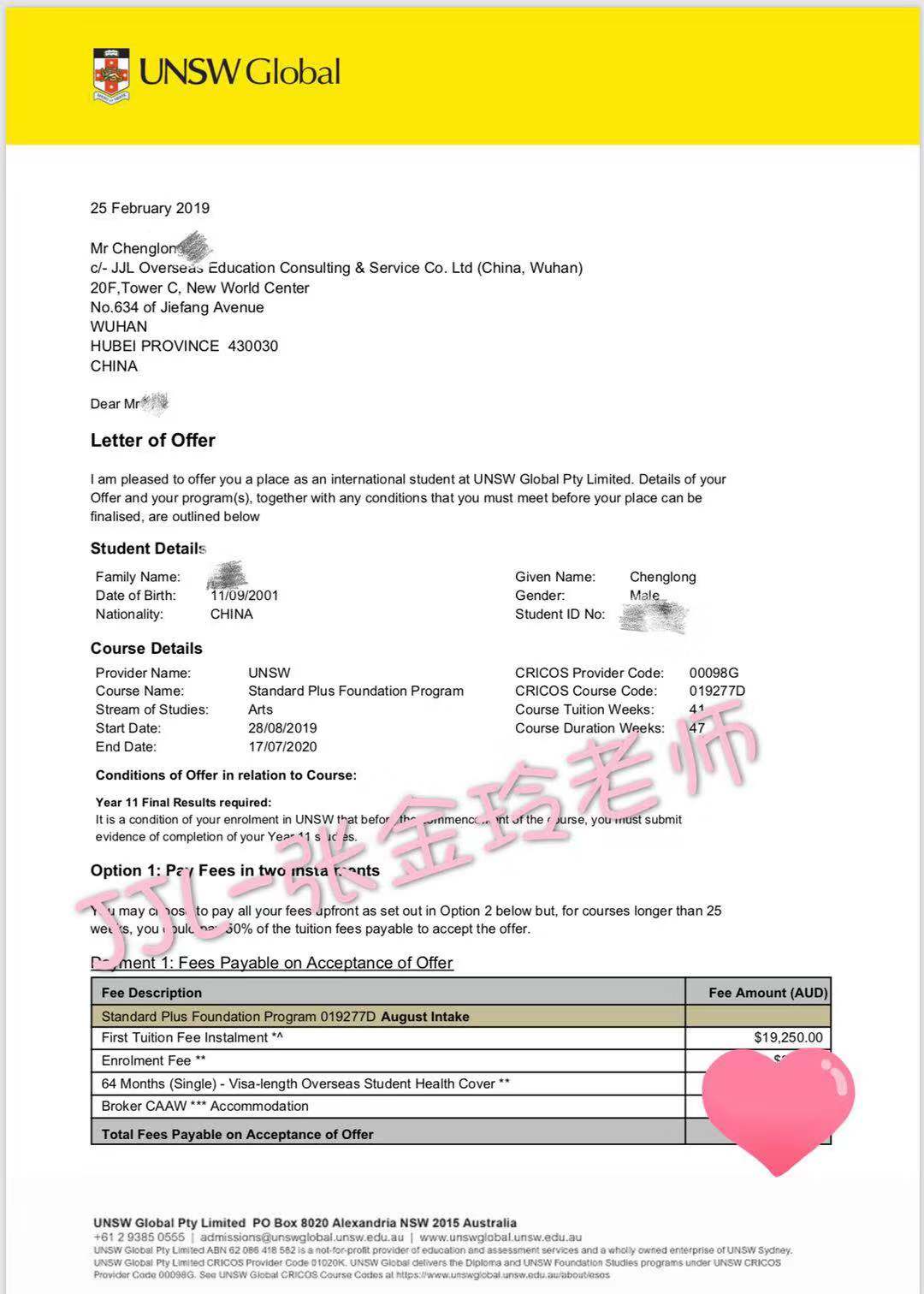恭喜 chenglong 同学获得世界排名 45 位的新南威尔士大学教育与文学双学位录取通知书,另有 5000 澳币的奖学金。
