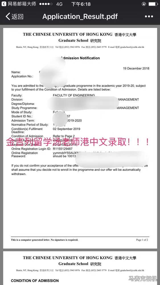 8:学生香港中文大学录取截图如下