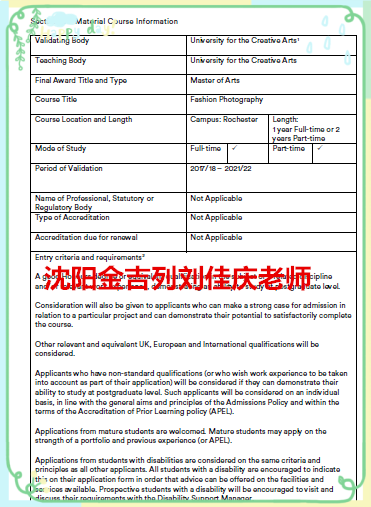 录取专业:时尚摄影硕士