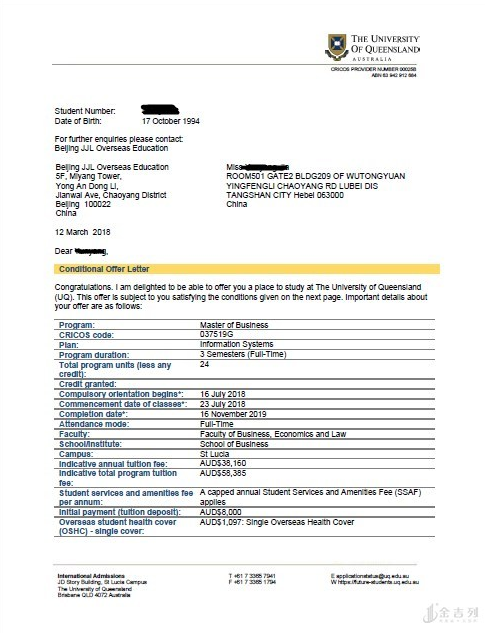 在充分分析了学生的国内国外背景后,给学生定位了澳洲八大:冲刺昆士兰大学,同时申请莫纳什大学,保底阿德莱德大学。同时给学生准备了详细的个人陈述等文书材料,考虑到学生家长想让孩子尽早回国,我们给学生规划的都是1.5年的硕士专业,同时和学校申请免除雅思,以缓解学生目前的学习压力。最终在双方的努力下,我们成功帮学生申请到昆士兰大学和莫纳什大学的商务信息系统硕士,成功申请到阿德莱德大学的金融硕士。