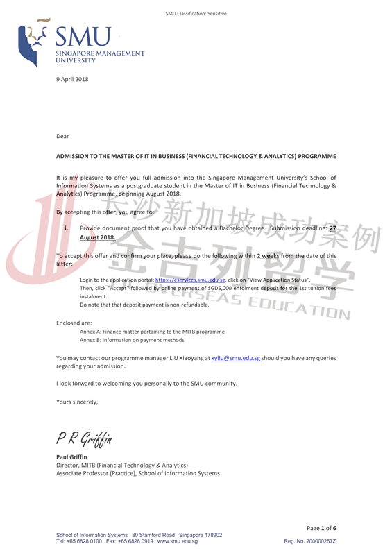 童同学,温州肯恩大学,本科在读,国际经济与贸易专业 GPA:3.365⁄4.0,IELTS 6.5, GMAT 590,获得新加坡管理大学MITB (Financial Technology & Analytics Track) 金融服务分析专业offer