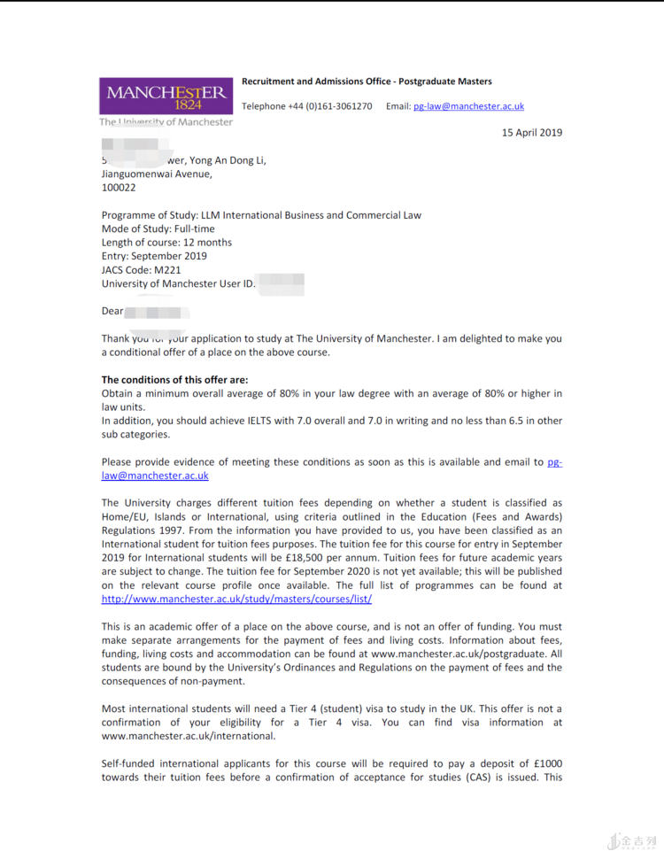 录取结果 : 曼彻斯特大学 布里斯托大学 伦敦大学国王学院
