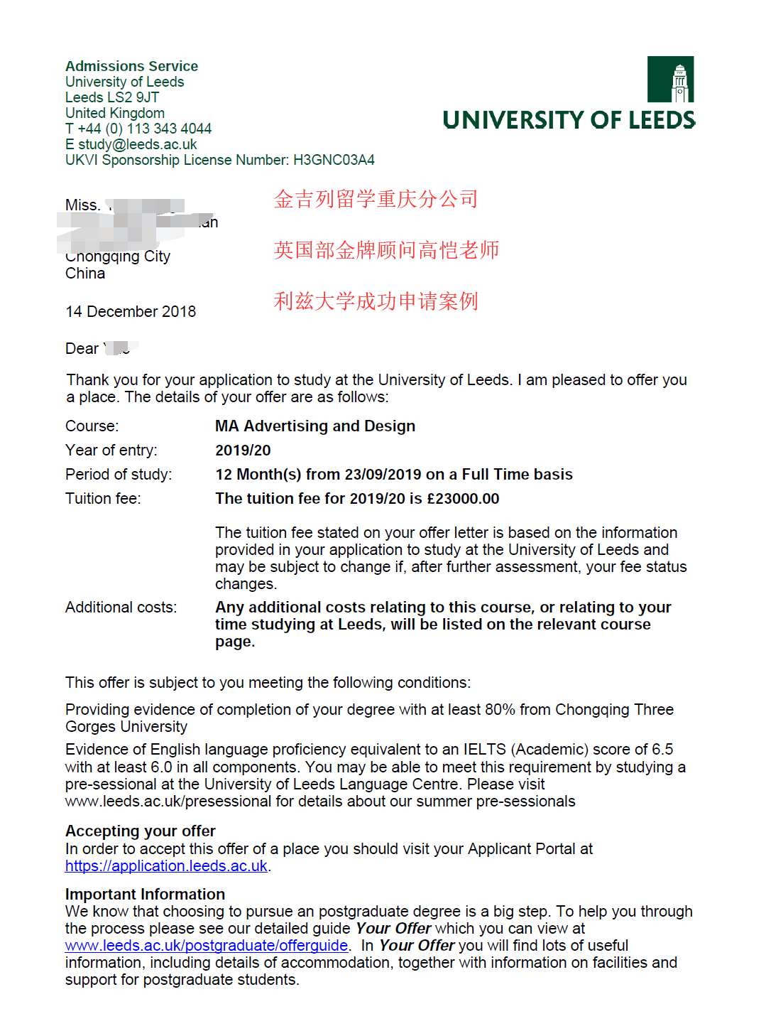 录取结果: University of Lees, 利兹大学 - MA Avertising an Design