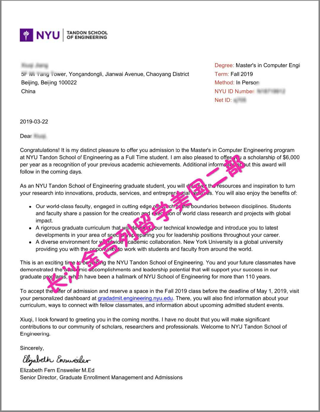 录取学校: 纽约大学( 2019 USNEWS 排名第 30 位)