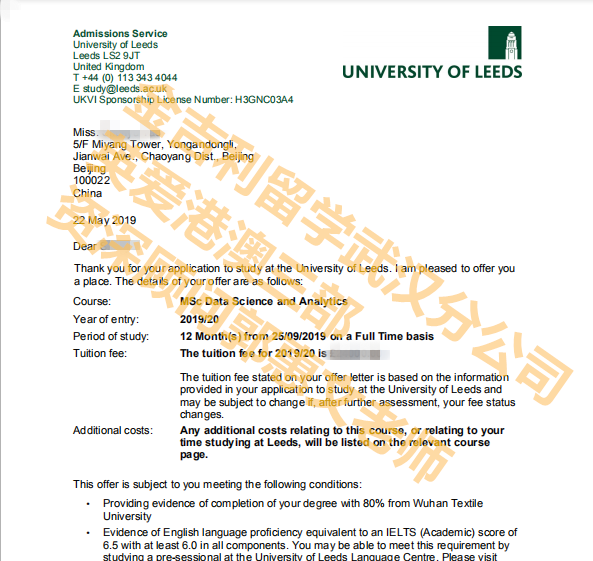 学生系武汉纺织大学金融专业的学生,因为考研失利,2019年3月份找到我希望申请英国,英国商科到了上半年申请的时候大部分学校都已经满位不再审理了,学生无实习无获奖等软性条件,通过把学生88分的硬实力进行包装后,申请到了余位不多的世界排名93位的利兹大学!