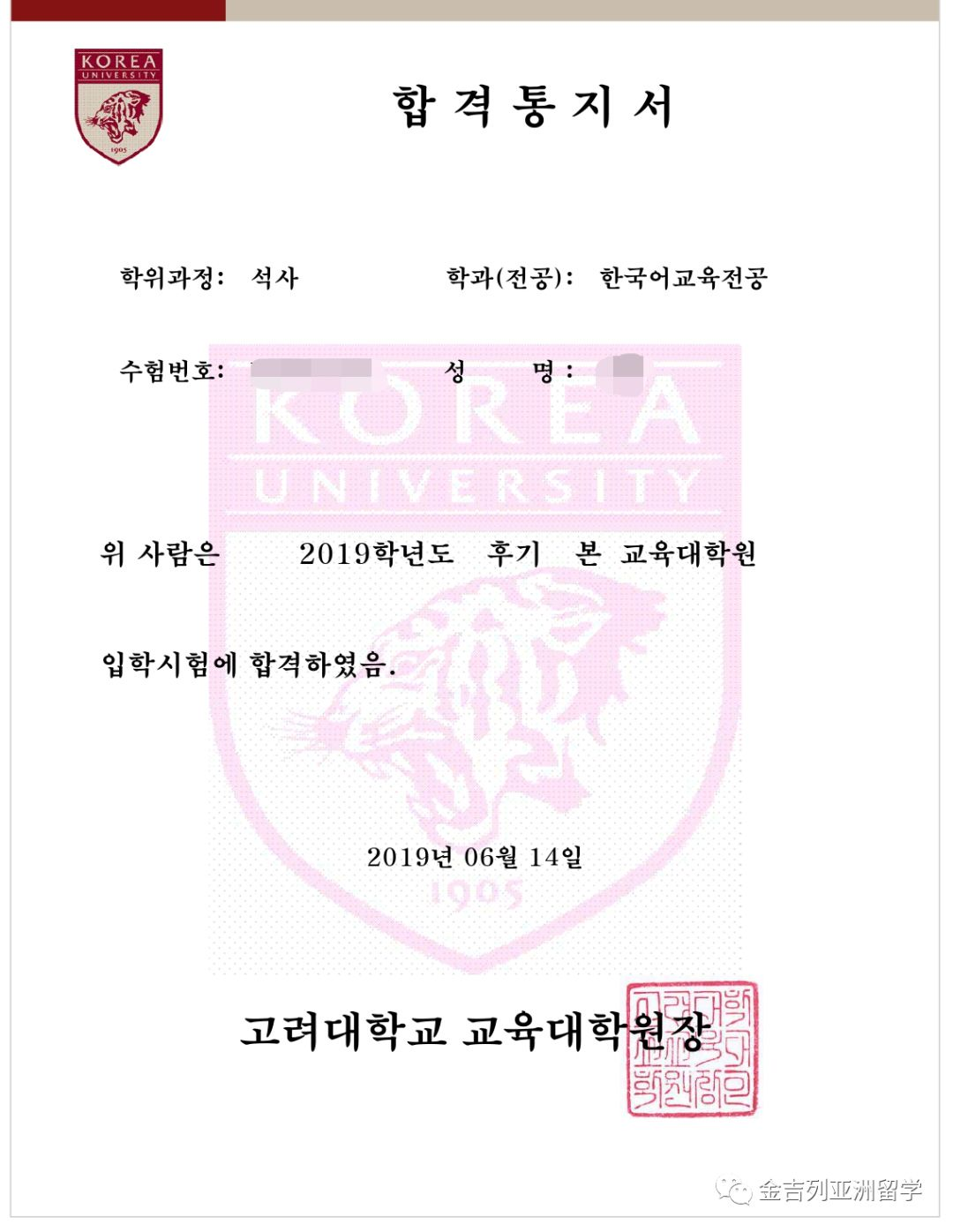高丽大学--研究生录取
