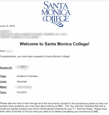 恭喜L同学获得社区大学圣莫尼卡学院的offer!