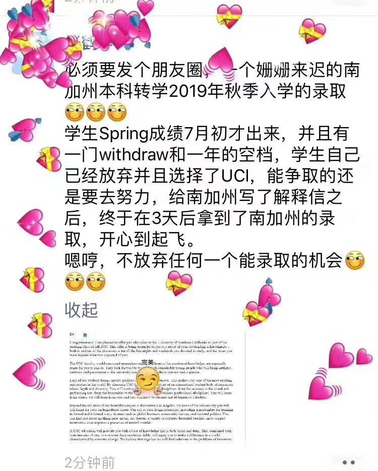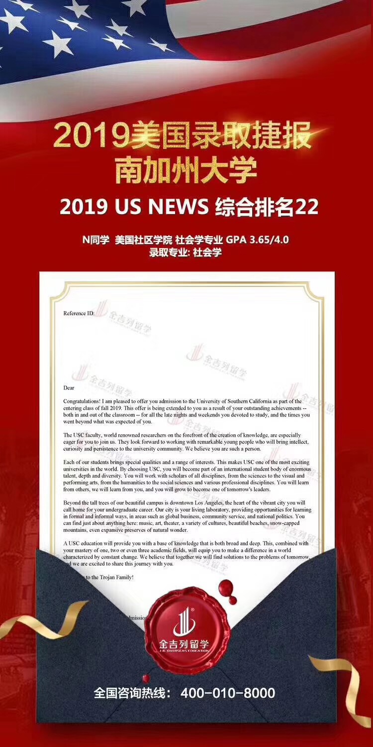 恭喜N同学被美国排名22名的南加州大学录取!