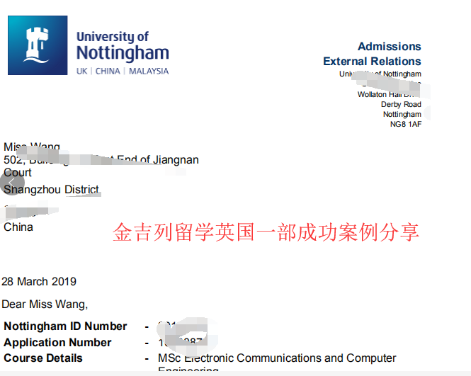 诺丁汉大学电子通信与计算机工程理学硕士OFFER