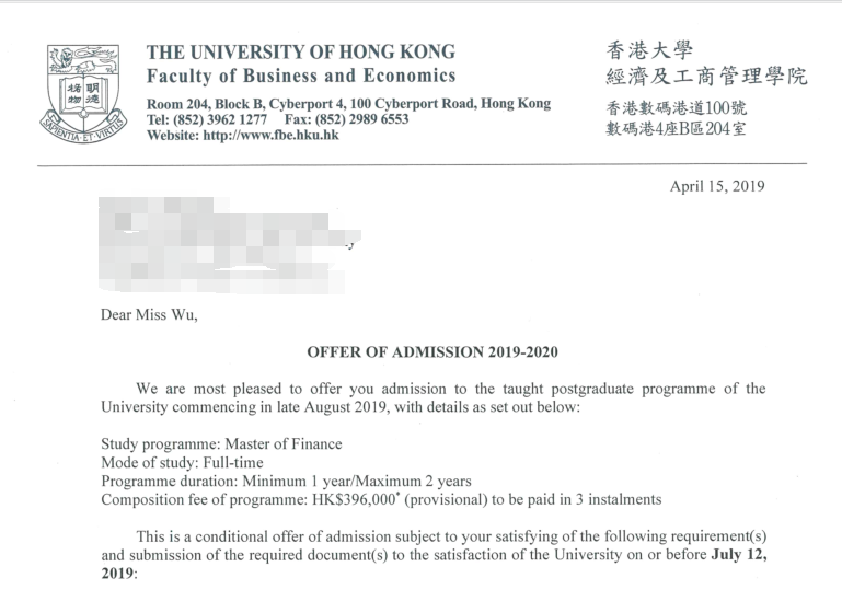 - 学生背景:悉尼大学本科,三年制,无荣誉学位,无雅思,无 GMAT 成绩, 4 段实习经历,成功录取香港大学金学硕士
