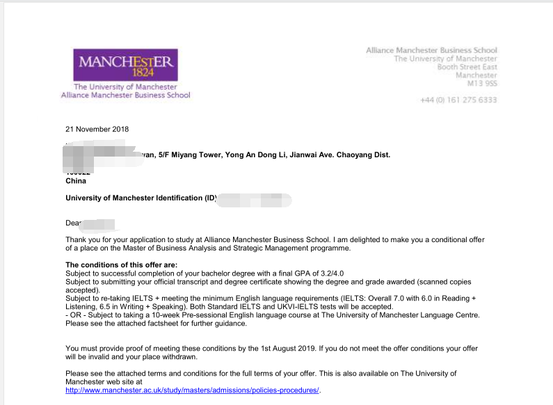 - 学生背景:厦门大学马来西亚分校,会计专业,申请是绩点 3.2 ,雅思 6.5 ,一段德勤的实习经历,最后成功录取曼彻斯特商学院等学校