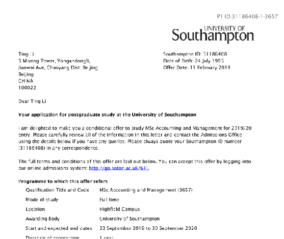 211院校,园艺专业,均分80分,跨专业申请世界排名前一百的南安普顿会计管理