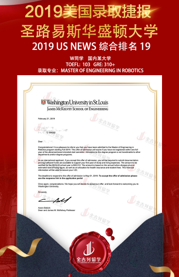 恭喜W同学获得华盛顿大学路易斯分校 机器人专业的录取offer!