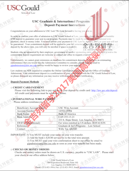 而在整个文书沟通中,学生也积极配合,通过多次沟通文书思路,把学生在实习和大学活动实践期间的优秀表现很好地凸显出来,而且开始写文书的时间比较早,时间较充分,最终文书学生非常满意。而最终也收到了全面综合排名 21 ,法学院排名 19 的 南加州大学 的录取,除此之外还收到了位于华盛顿首府 D.C 附近的乔治城大学 LLM 录取。