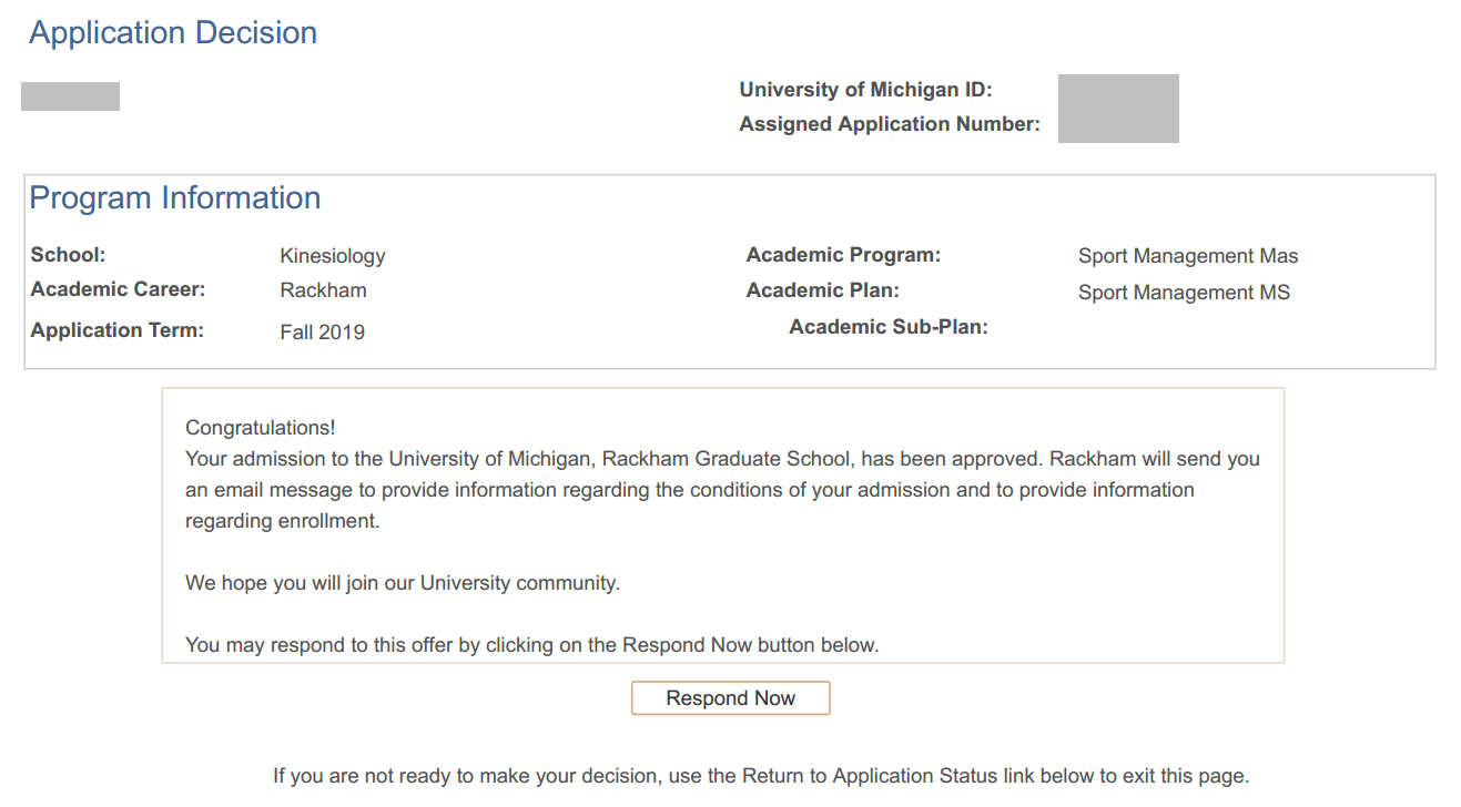 University of Michigan, Ann Arbor Sport Management