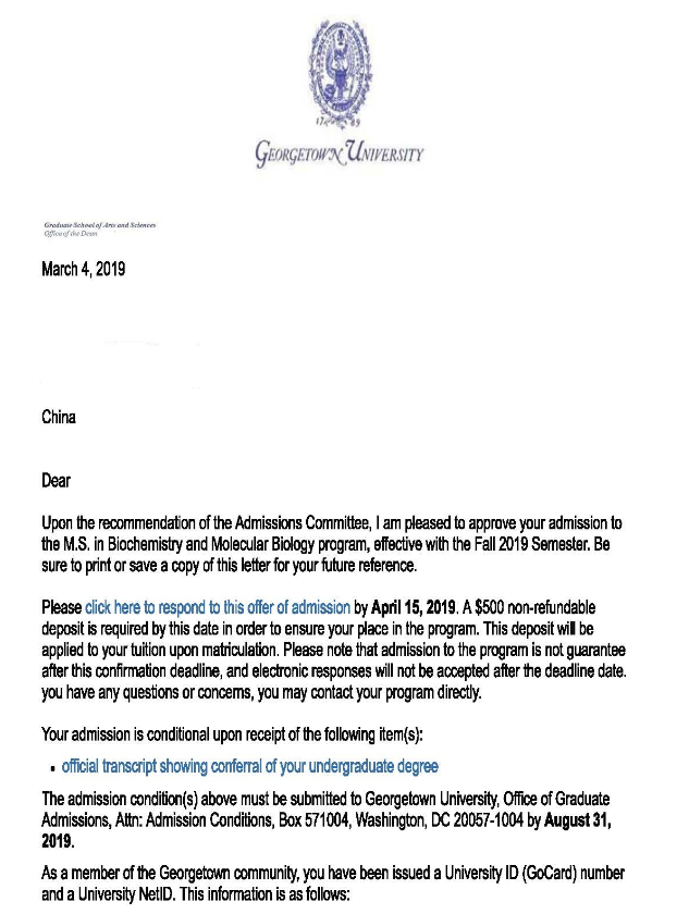 Georgetown University M.S. in Biochemistry an Molecular Biology