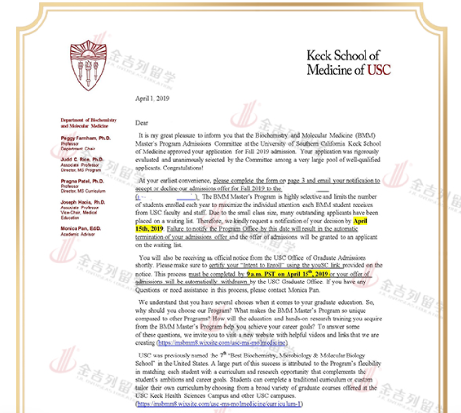 University of Southern California MS in Biochemistry an Molecular Meicine
