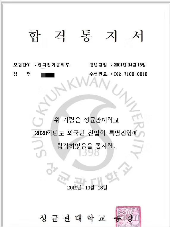 > 韩国成均馆大学一批录取