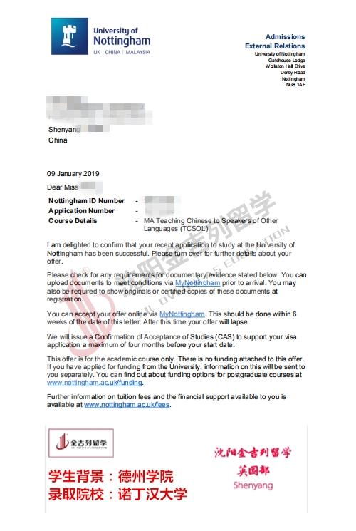 学生来自德州学院,均分87分,申请时无雅思,王同学在大二的时候找到侯老师规划,将均分从82分提高到了87分,虽然申请时无雅思,不过在侯老师的把控下,王同学在文书中着重体现了一下王同学的实习,以及校内的教学,代课经验,在背景不好的情况下,成功逆袭了世界排名82的诺丁汉大学,也顺利获签,再次也祝愿王同学一切顺利~以下是诺丁汉大学的录取分享~