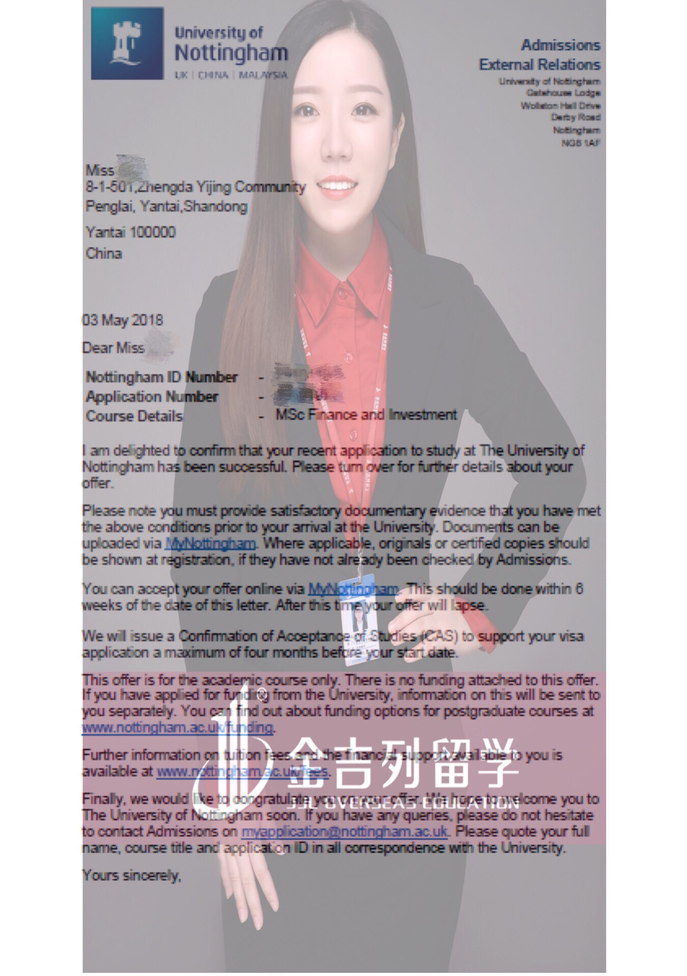 跟大家分享两个山东工商学院背景的学生 斩获诺丁汉大学商学院热门专业的 offer