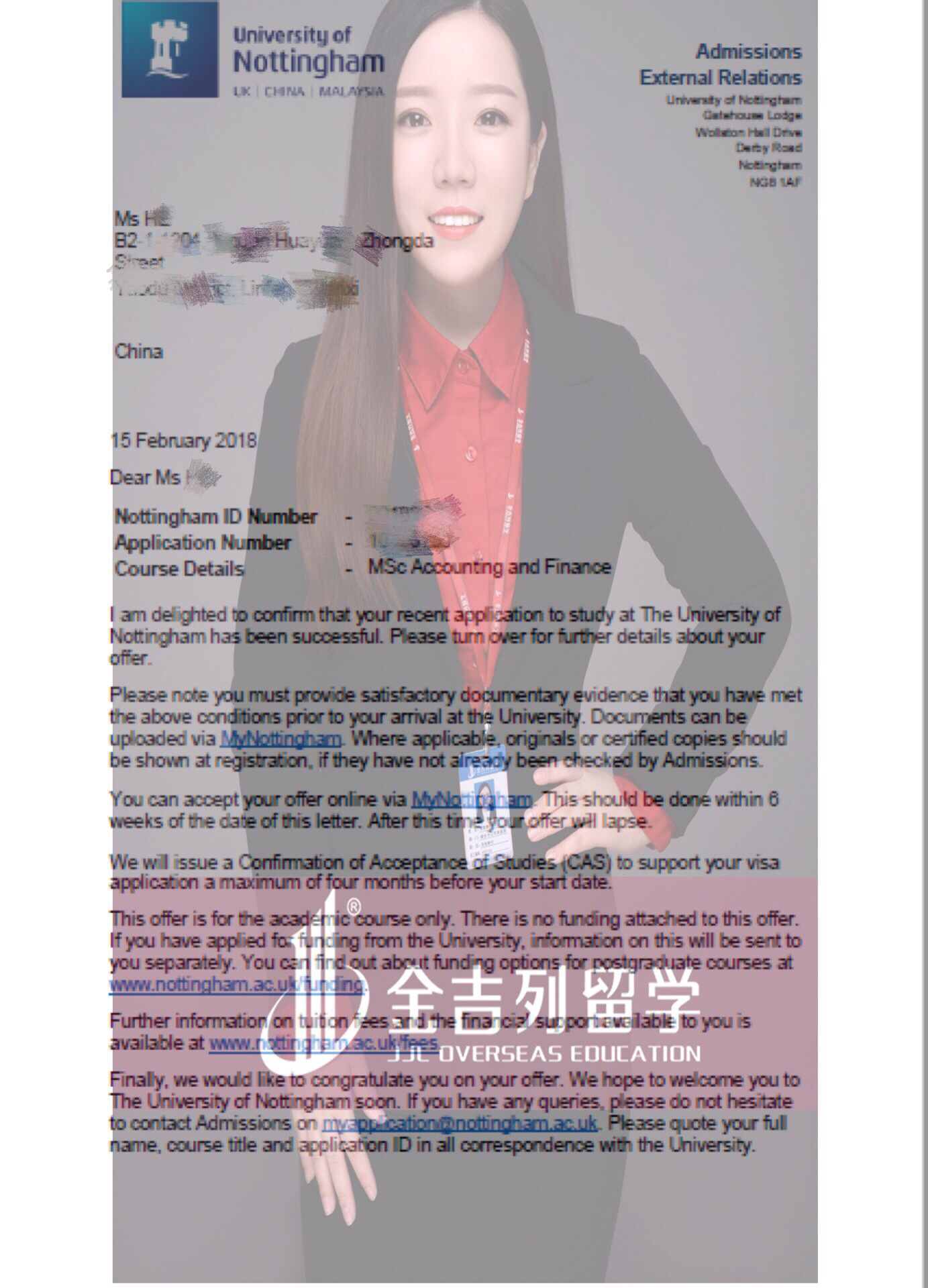 第二个是大年初一,我还在拜年的时候学生告诉我诺丁汉 AF 录取啦! MSc Accounting an Finance 这个专业不论放在哪个学校的商学院里都是最最最难录取了。