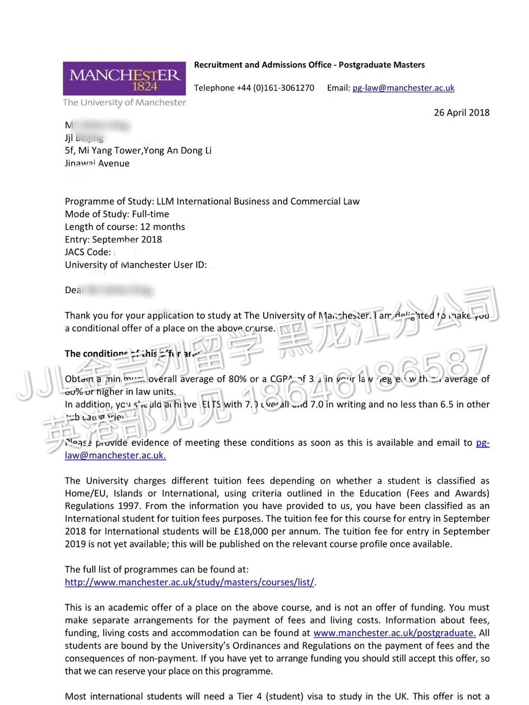 录取结果:英国 曼彻斯特大学(世界排名第33位,全英国排名第25位)