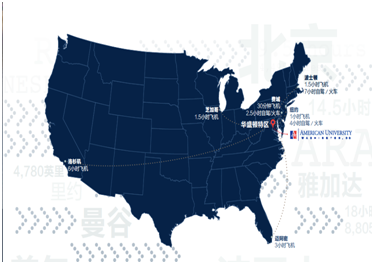 哥伦比亚华盛顿特区 , 美国首都,是美国政治中心,人均 GDP 全美最高。 230 个国家和地区驻美国大使馆及知名国际组织(国际货币基金组织,美洲银行,世界银行等)的所在地 , 也是美国著名的金融,传媒中心之一。美利坚大学坐落在华盛顿特区西北部著名的使馆区,与众多大使馆以及美国国土安全部一墙之隔。距中华人民共和国驻美国大使馆仅仅 1.7 英里 .
