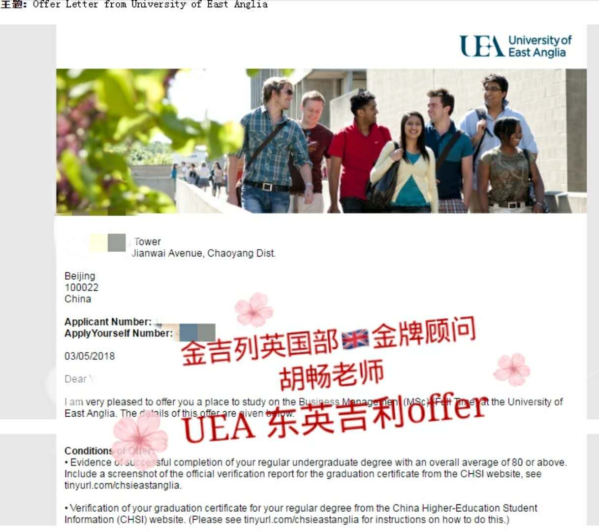 录取院校:UEA-商务管理