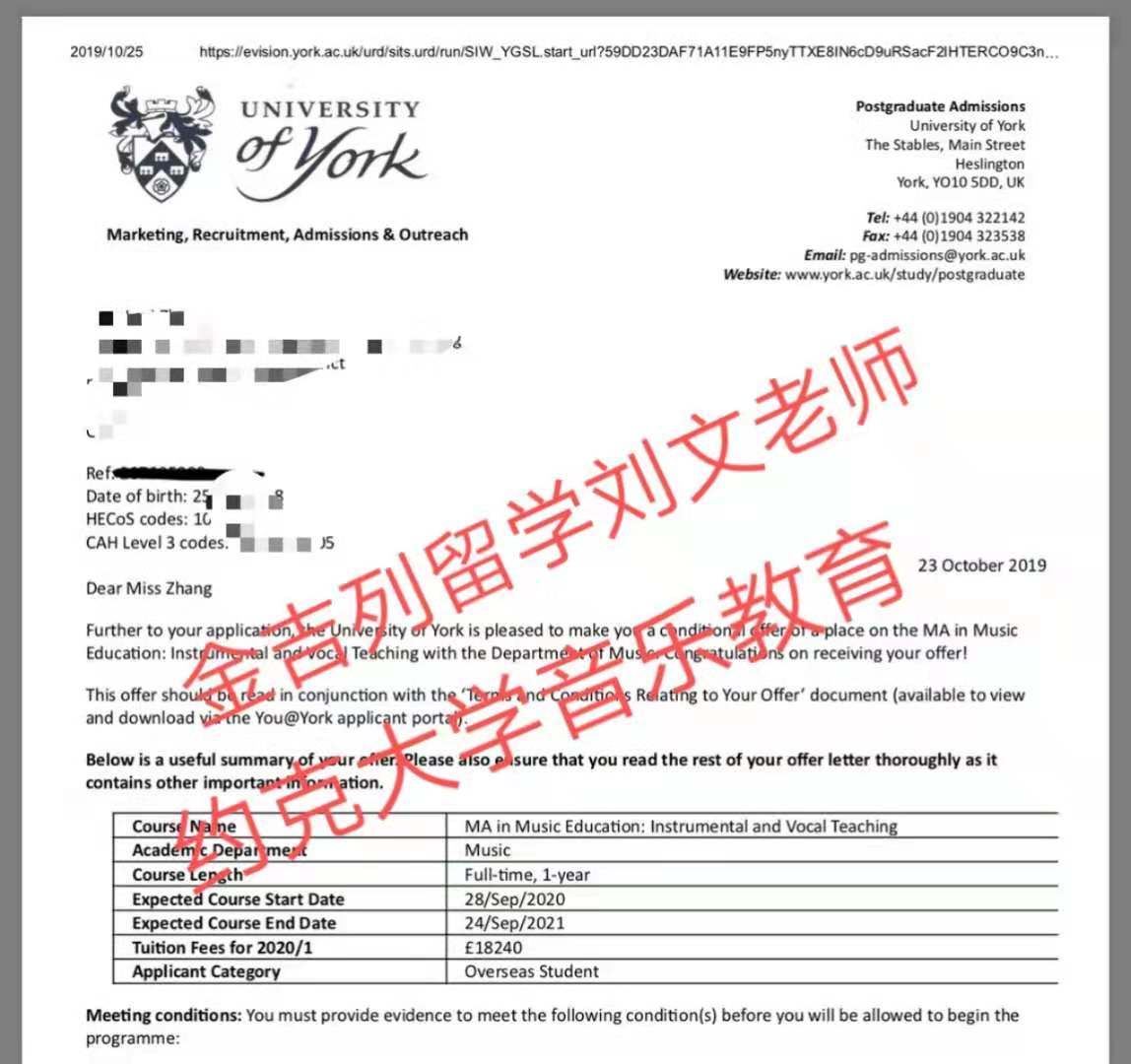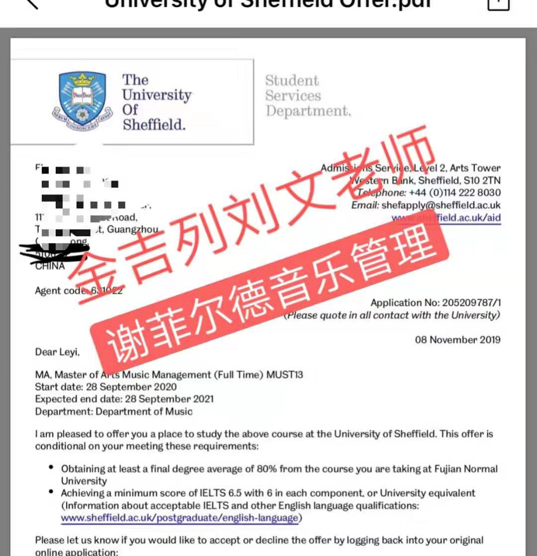录取专业:音乐教育(约克大学) 音乐管理(利兹大学、谢菲尔德大学)