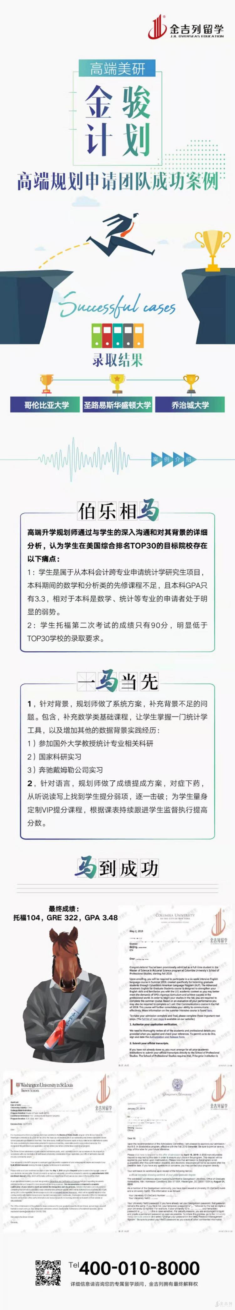 2019美国研究生低分高录统计学案例分享_留学成功案例-金吉列留学官金吉列高端美研申请规划服务:金骏计划——服务案例2019低分高录案例: GPA3.11,本科会计专业跨专业申请到哥伦比亚大学,圣路易斯华盛顿大学和乔治城大学统计学: