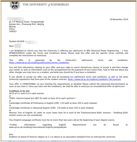 3.积极配合:从确定留学到文书写作,再到材料制作,学生都非常积极高效的配合我们的工作,文书基本确定了专业方向之后没有做变化和改动,这样我们文案老师在书写的过程中也能够非常有针对性。爱丁堡中间要求补件,学生也是非常积极的去学校开材料补件。