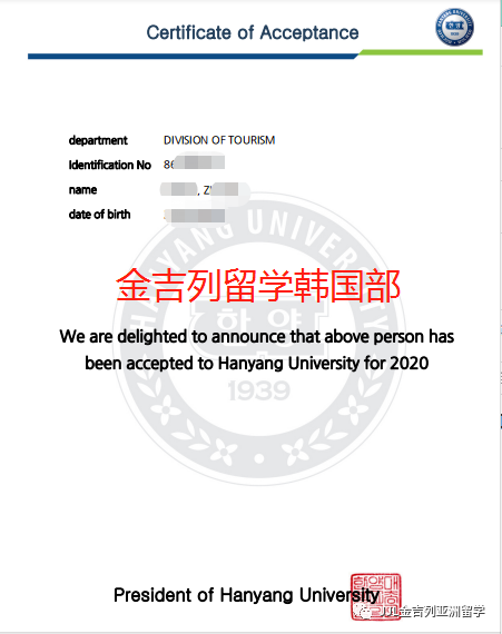录取情况:学生普通高中毕业,申请的韩国大学的语学院就读语言,在申请时学生是TOPIK3级,后补交TOPIK4级的语言等级,最终成功申请到汉阳大学的观光学专业本科新生的录取