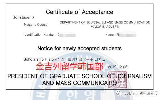 录取情况:学生毕业前来咨询了解韩国读研相关事宜,无韩语基础,经过和学生的沟通,学生先是申请了延世大学的语学院,学生在申请研究生之前成功的考出了TOPIK5级的好成绩,最终学生成功申请到了汉阳大学的广告宣传专业并获得汉阳大学的奖学金!
