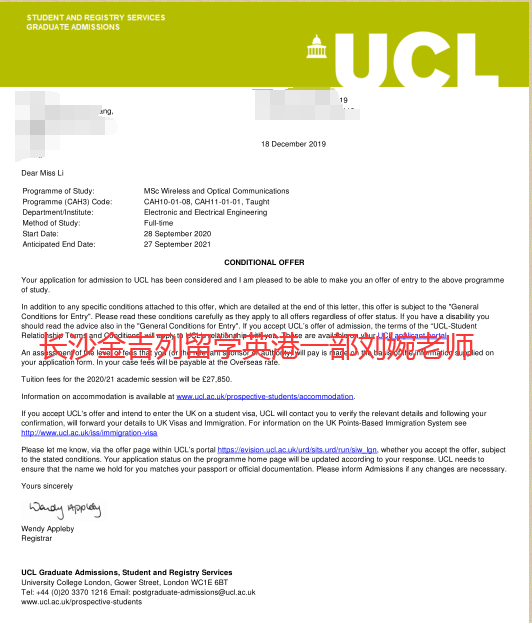 录取学校:伦敦大学学院