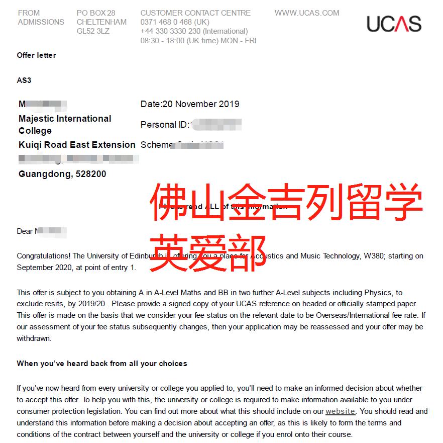 爱丁堡大学 - 声音工程 背景:国际高中读 Alevel 学生大二在佛山金吉列定的留学,英爱部老师从学生定留学开始制定方案,关注学生学校课程,规划可选的专业活动及课题。另外,还参加金吉列提供的实习活动与专项背景提升项目去提升学生背景。