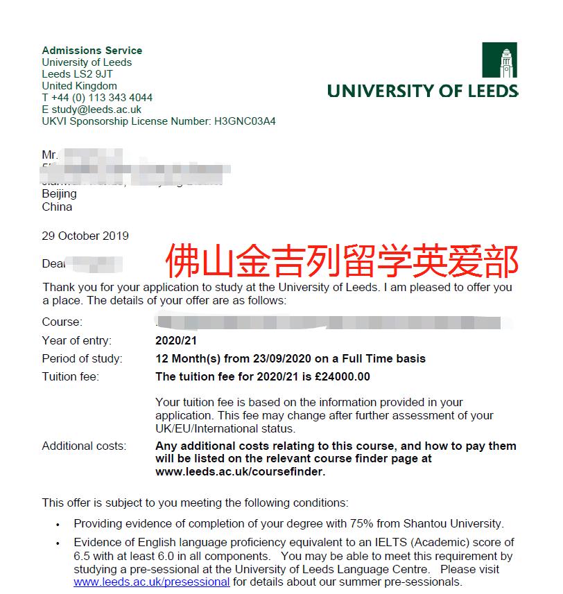 利兹大学 MSc(Eng) Engineering Technology an Business Management 背景:汕头大学电子信息工程, GPA2.63 学生大一在佛山金吉列定的留学,英爱部老师从学生定留学开始制定方案,关注学生学校课程,可选的专业活动及课题去帮助学生利用学校资源提升背景。