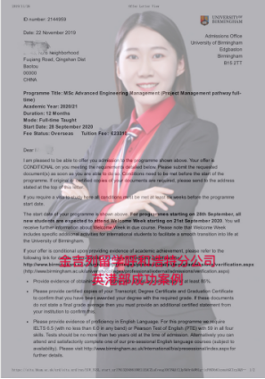 录取院校:伯明翰大学