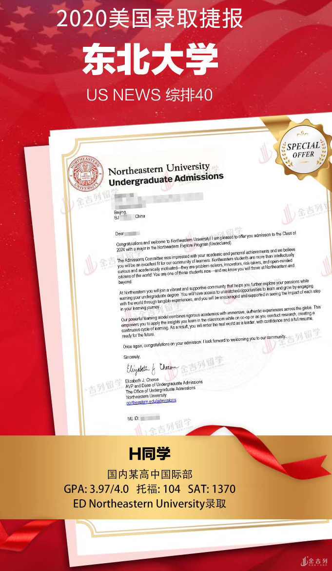 GPA 3.97,托福104,SAT 1370,ED 东北大学