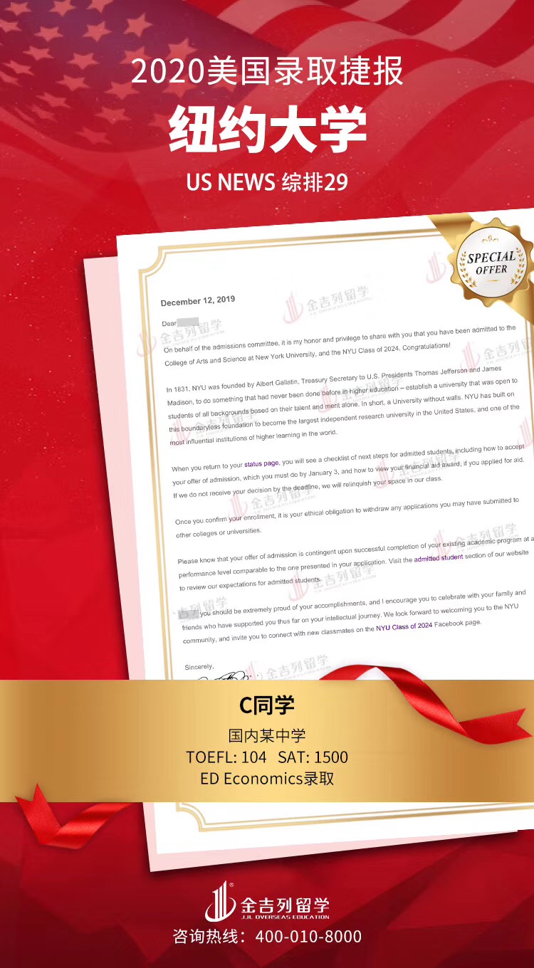 录取院校:纽约大学(USNEWS 综排 29)ED 录取