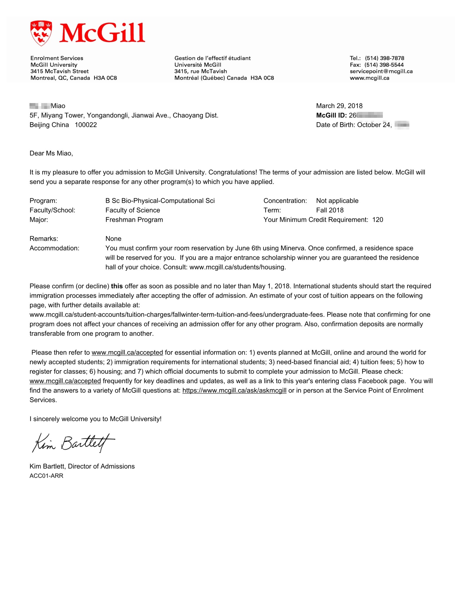 回想整个的申请过程,这里面有太多的心酸,由于申请过程较长,很多的细节都需要落实,家长也很相信我们,最终成功被加拿大三所名校录取。最后,学生当然的选择了加拿大最好的大学 &mash;麦吉尔大学。