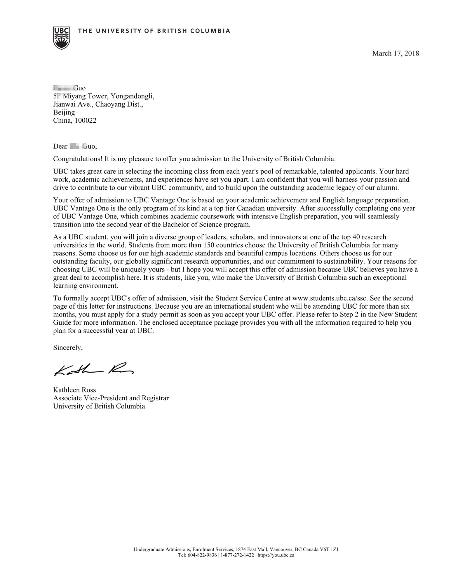 录取院校:英属哥伦比亚大学、温莎大学、卡尔顿大学