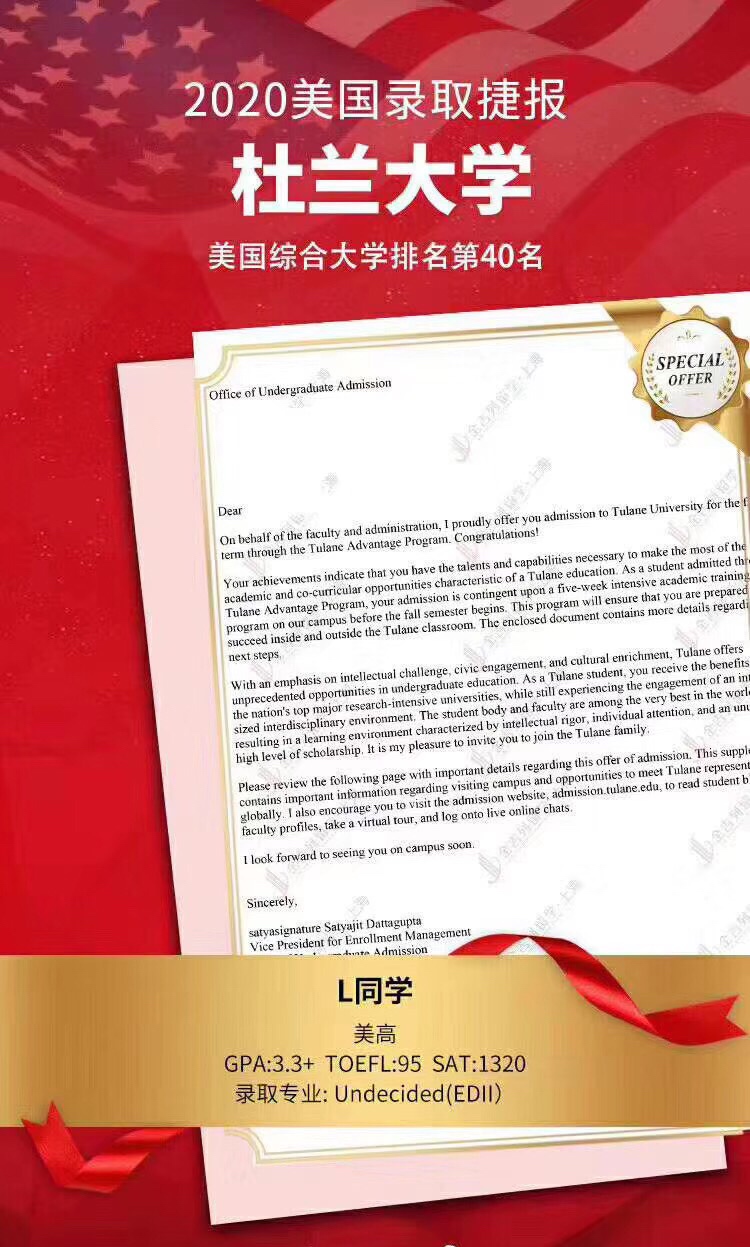 录取院校:杜兰大学 ED II (全美综排#40)