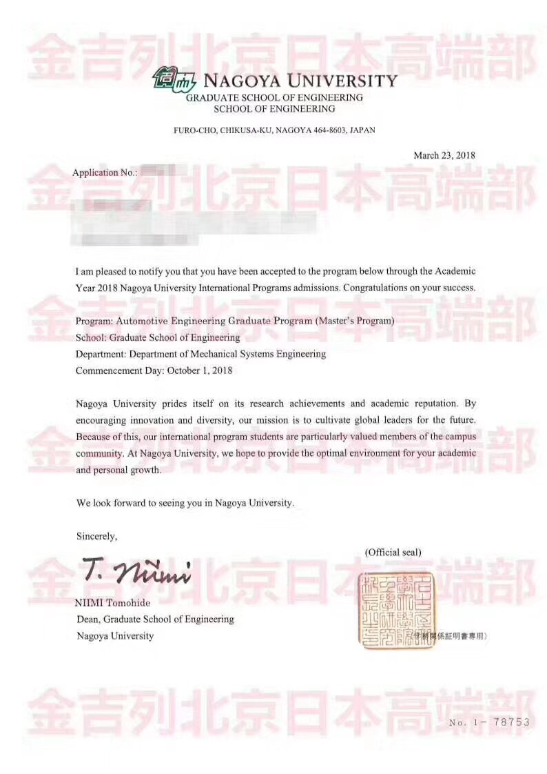 恭喜苗同学成功收获世界排名前一百的名古屋大学汽车工程英文授课硕士录取(背景:机械专业,211,gpa3.2/4,托福100)你足够优秀,我足够专业,留学就找金吉列