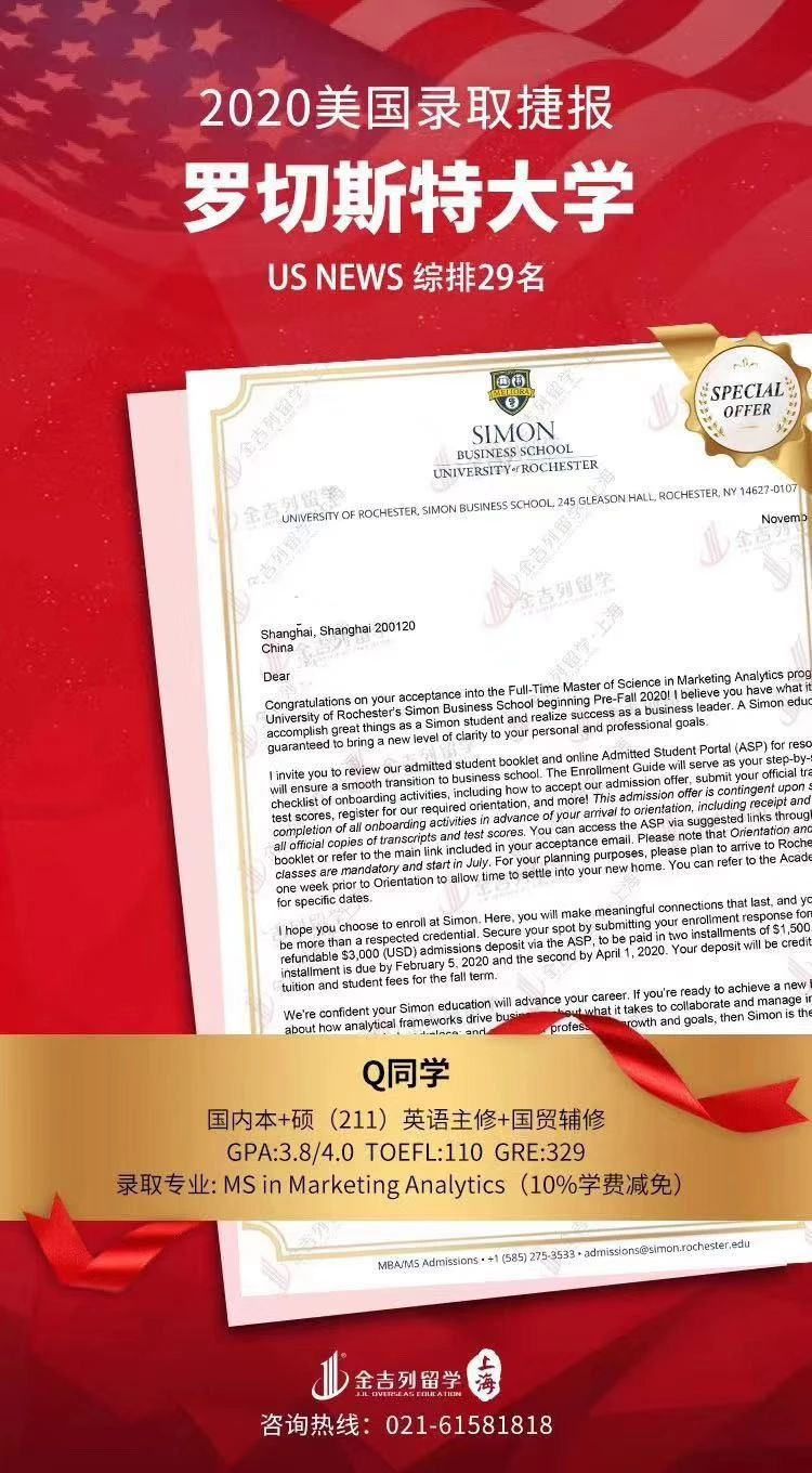 道阻且长,行则将至。2020年美国留学录取进行时,感谢各位同学和家长的支持、配合、理解和包容,感谢整个申请团队的辛苦付出。只要你足够优秀,我们会让你更优秀,最后也希望各位同学今后学业有成,事业有成!录取offer集锦仅包含美国本科、研究生和博士Top30以内高端院校录取数据,中学录取,本科及硕博Top30以后录取等除外,个人信息部分均已保护。可供今年和明年申请留学美国的同学参考,美国名校竞争激烈,申请难度大,早准备,早规划,早申请,早录取,结果一定不会差。