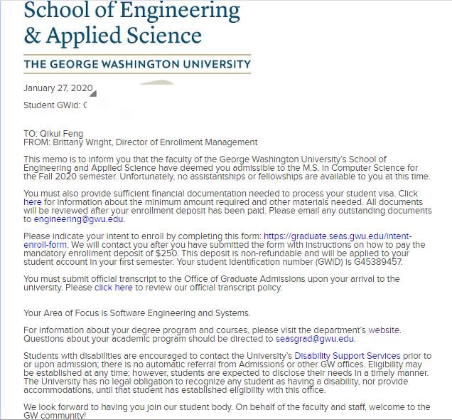 美国乔治华盛顿大学计算机科学硕士录取案例