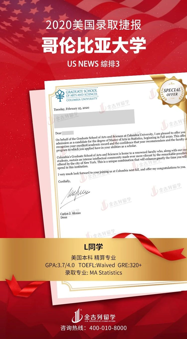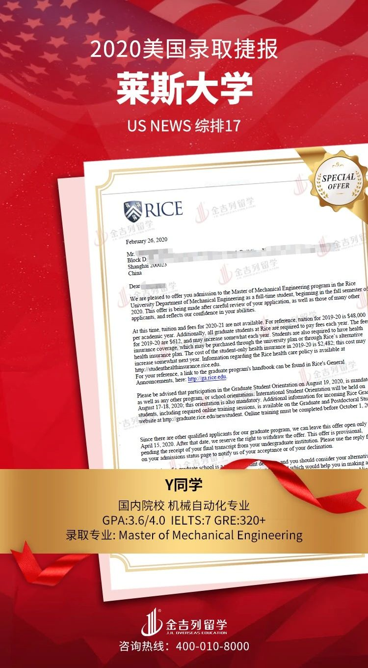 道阻且长,行则将至。2020年美国留学录取进行时,感谢各位同学和家长的支持、配合、理解和包容,感谢整个申请团队的辛苦付出。只要你足够优秀,我们会让你更优秀,最后也希望各位同学今后学业有成,事业有成!录取offer集锦仅包含美国本科、研究生和博士Top30以内高端院校录取数据,中学录取,本科及硕博Top30以后录取等除外,个人信息部分均已保护。可供今年和明年申请留学美国的同学参考,美国名校竞争激烈,申请难度大,早准备,早规划,早申请,早录取,结果一定不会差。